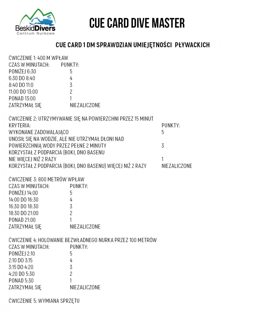 CUE CARD KURS NURKOWY DIVE MASTER 1